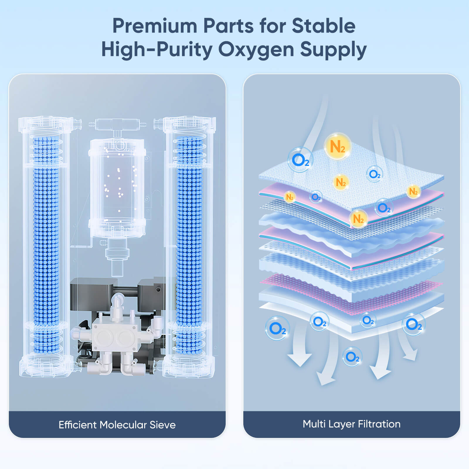 The home oxygen concentrator is a device that converts air into oxygen, allowing you to breathe easier. It runs on AC power and is only compatible with home or stationary models. The concentrator brings air through the inlet vent into the machine, where it passes through a filter that catches dust and other small foreign particles before going through an oxygen separation system. The oxygen is then released through the tube and cannula in the proper dosage.