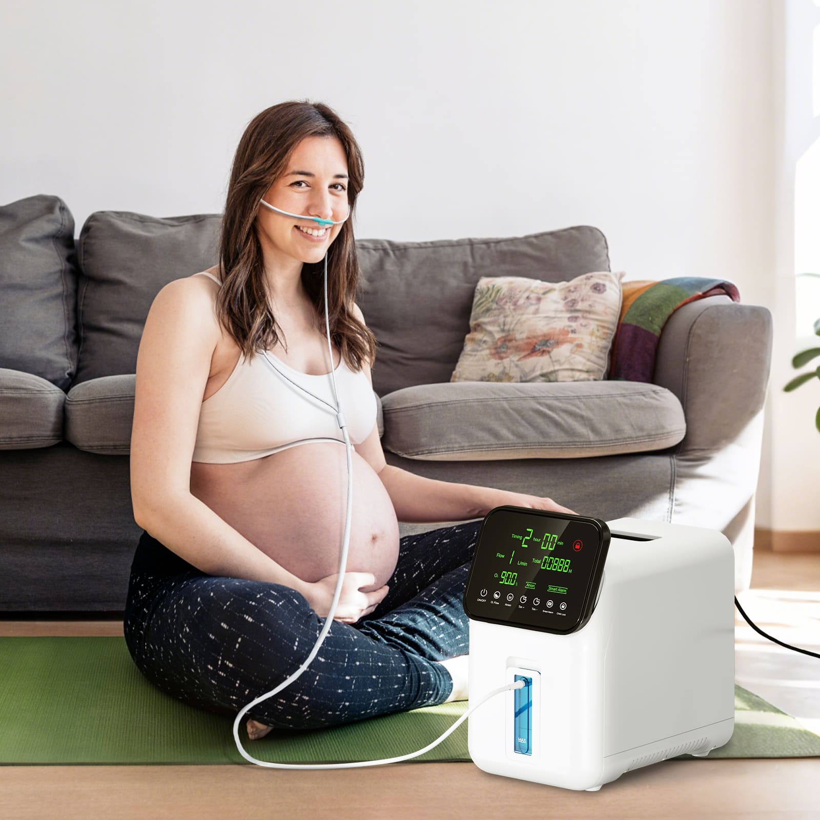 Your well-being matters. This concentrator also includes a child lock to prevent accidental changes and a smart alarm to alert you in case of an emergency. Whether you’re at home, at work, or at school, it’s perfect for seniors, pregnant women, workers, and students.