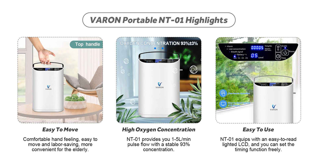 VARON 5L Portable Oxygen Concentrator NT-02 + One 8-Cell Battery Bundle