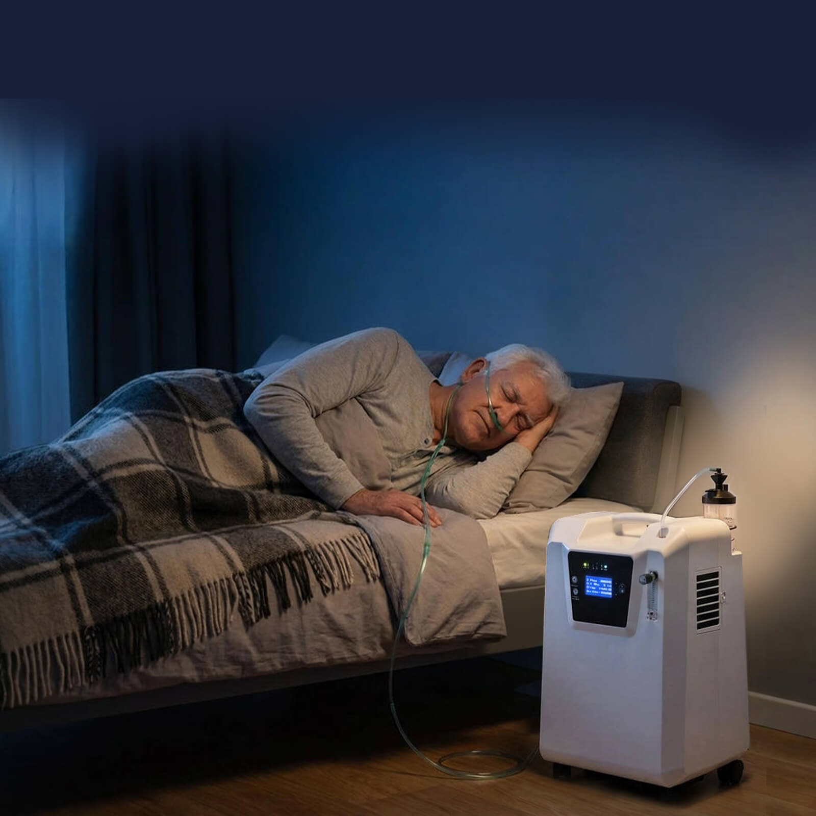 Equipped with a powerful oil-free air compressor, the Serene 10 operates quietly at under 46dB, making it ideal for peaceful use, even at night. With its efficient heat dissipation and low energy consumption, it ensures reliable, continuous oxygen delivery 24/7.