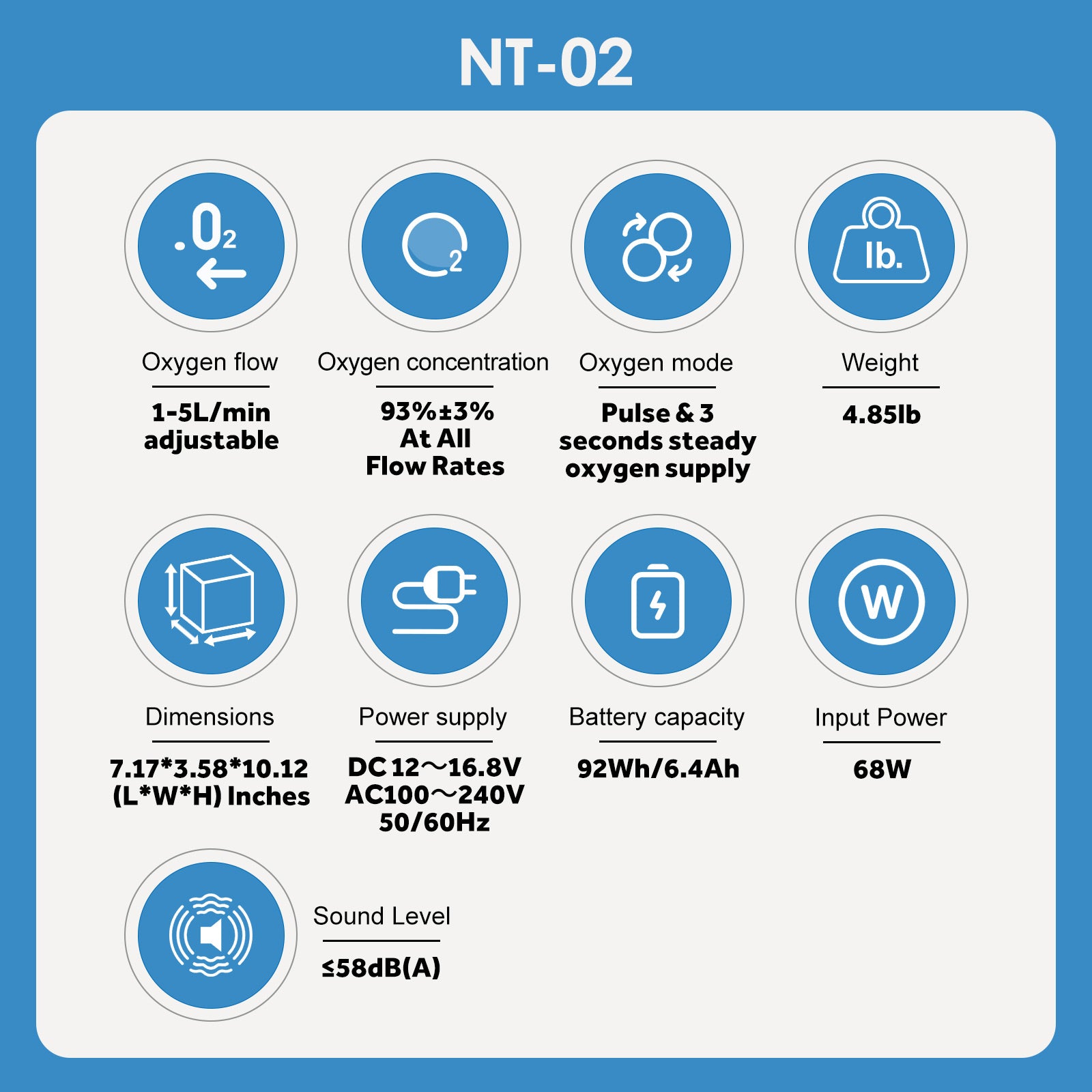 NT-02 provides high-purity oxygen with a 1–5 L/min flow rate, helping you breathe comfortably and stay energized. Its lightweight design makes it easy to carry at home, outdoors, or even in the car, giving you freedom and confidence wherever you go.