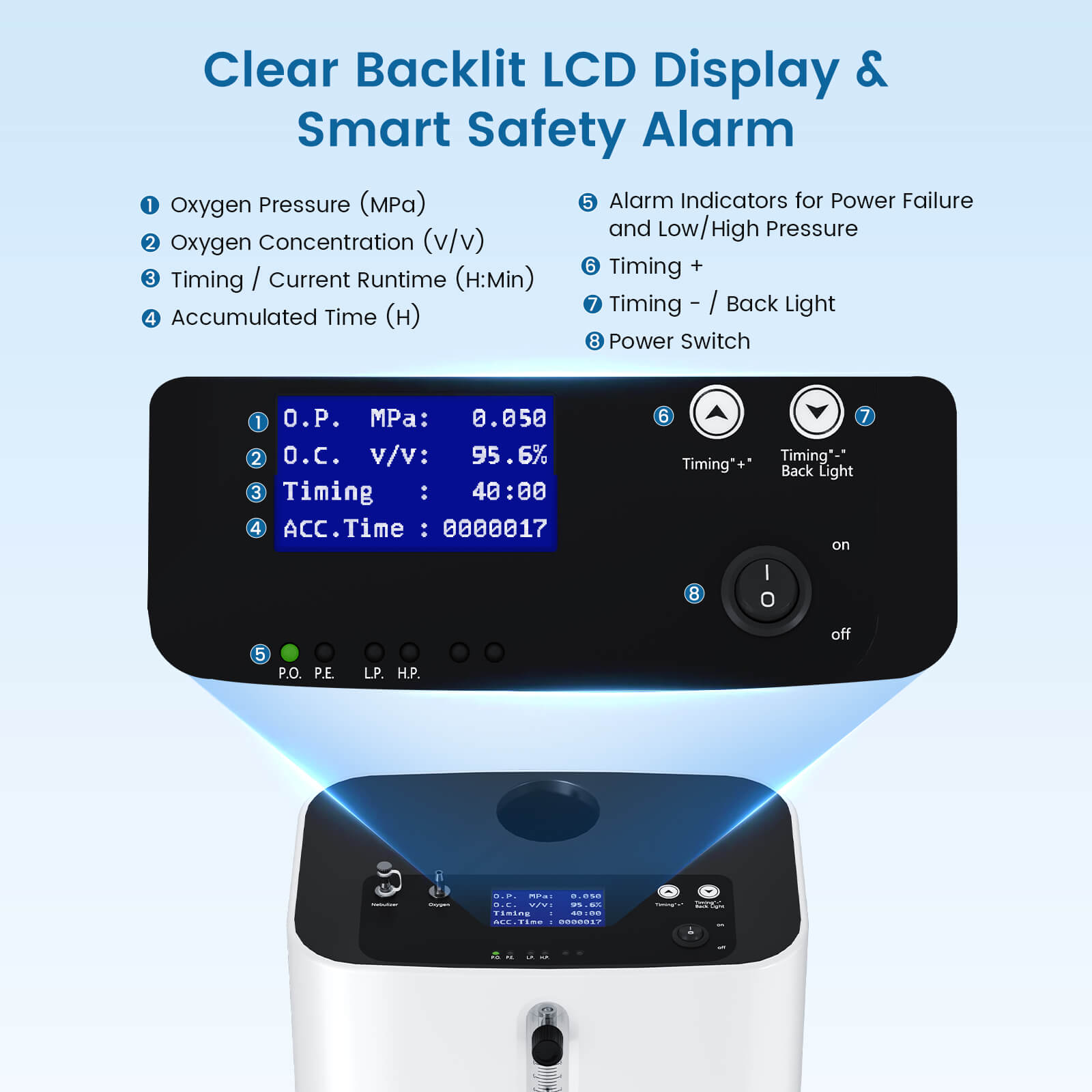 Breathe comfortably at your own pace. The adjustable flow rate (1–10 L/min) delivers up to 93 ± 3% high-purity oxygen at low flow settings, giving you steady, reliable support day and night. Dual filters keep the air clean and fresh for long-term use. Perfect for daily care of seniors, moms-to-be, office workers, and students under stress.